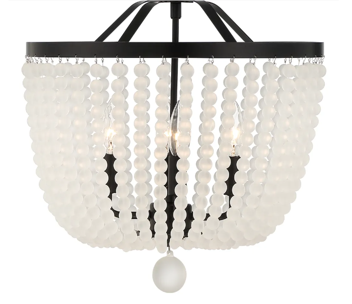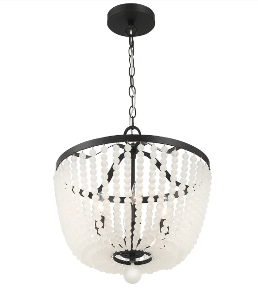 A traditional Empire shape meets modern elements in Crystorama's Rylee Collection. A circular-shaped hand painted frame gives this fixture a vintage, distressed look, while the beads lend to a bohemian style flare. In a perfect combination of texture and materials, the Rylee creates a rich visual impact to any space.