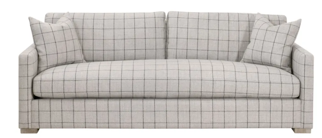 Performance Windowpane Cement, Natural Gray Oak Stain-Resistant Treated Fabric Removable & Reversible Seat and Back Cushions 8-Way Hand Tied Suspension Top Stitch Box Cushions